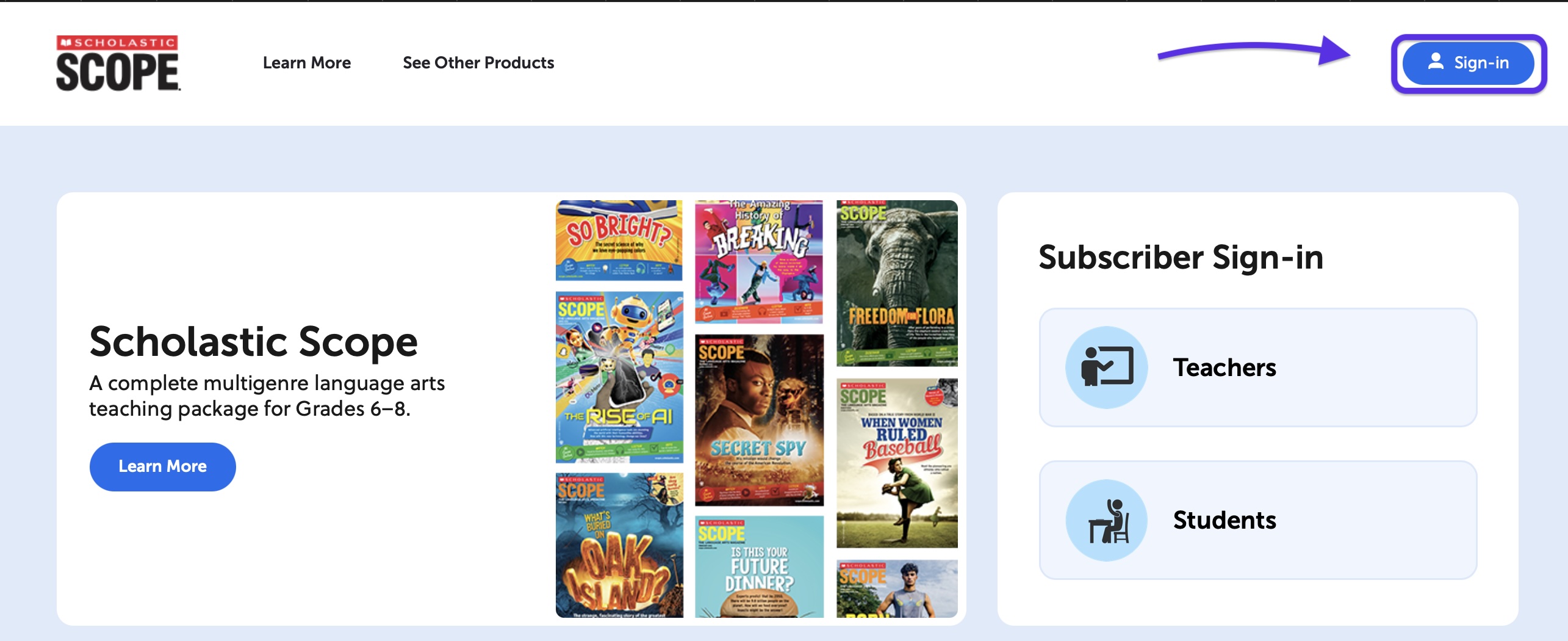 Once you’ve registered and activated your Scope subscription for the year, you can sign in as a teacher at any time!
