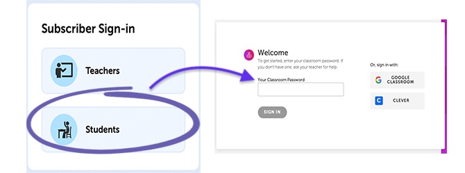 If your school is using a Learning Management System like Google Classroom or Clever, the process is even simpler. Once you sync your account with Scholastic, all your students need to do is click the Google Classroom or Clever buttons. They will not need a classroom password.