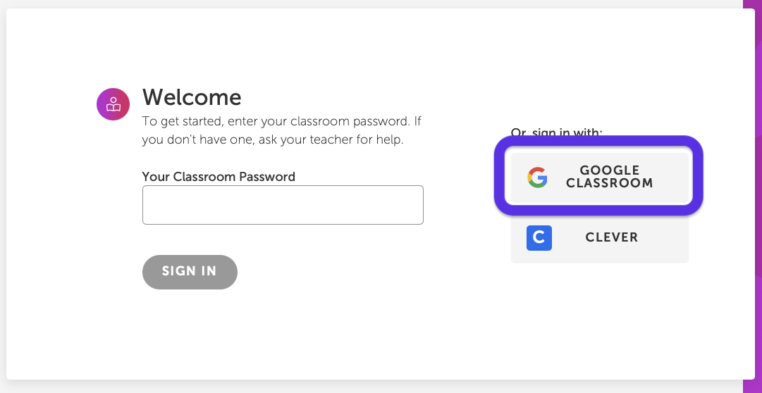 3. Enter the classroom password you shared with them! (Not sure where to find that? Click here.) Then just click Sign In.